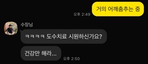 치료 받다가 남편한테 톡을 날렸는데 ㅋㅋㅋㅋ잇티제의 위로 단 5글자